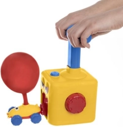 Jucărie distractivă și educativă, fără baterii, în care mașinuțele sunt propulsate de aerul din balon. Copiii montează balonul, apasă pompa de câteva ori și, prin apăsarea declanșatorului, lansează mașinuța înainte. Setul de 15 piese oferă ore întregi de jocuri, curse și învățarea bazelor fizicii prin joacă.