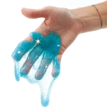 Slime-ul albastru, strălucitor este moale și maleabil, ideal pentru jocuri tactile și dezvoltarea îndemânării.