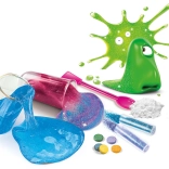 Include diverse materiale care diversifică experimentele. De la slime-ul strălucitor până la tuburile de testare distractive.