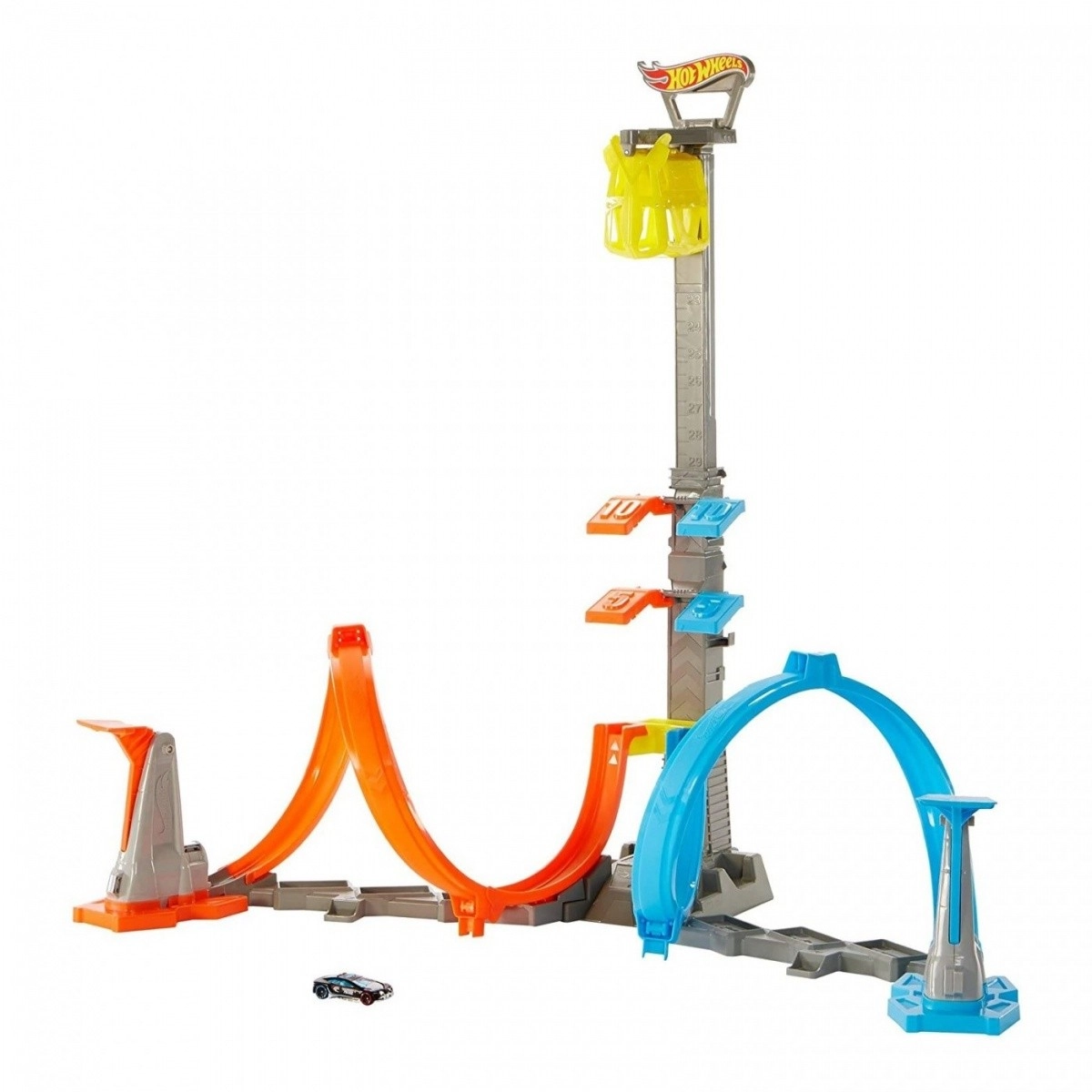 Bucle duble și lansatoare puternice trimit mașinuțele în lupta pentru primul loc. Ideal pentru competiția a doi piloți sau antrenament solo.