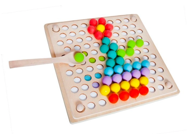 Puzzle din mărgele de lemn