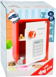 Setul conține în total 68 de piese – bancnote euro din hârtie, monede aurii și argintii și lingouri aurii din lemn. Datorită dimensiunilor de 20 × 20 × 27 cm, seiful este suficient de încăpător pentru toate comorile copiilor și în același timp stabil în timpul jocului. Jucăria este potrivită de la 3 ani și susține creativitatea, abilitățile sociale și jocurile de rol.