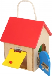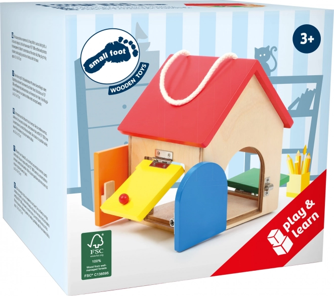Această căsuță din lemn de calitate de la small foot este plină de elemente interactive – fiecare ușiță are un alt tip de închidere, astfel încât copiii își antrenează îndemânarea degetelor, gândirea logică și răbdarea într-un mod distractiv. Datorită construcției robuste și culorilor vii, este ideală pentru joacă acasă și în călătorii.