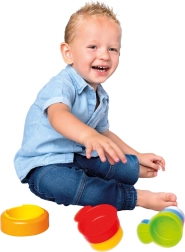 Stivuirea inelelor pe bază și introducerea lor una în alta întăresc degețelele, priza și coordonarea mână–ochi încă de la 10 luni.