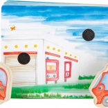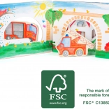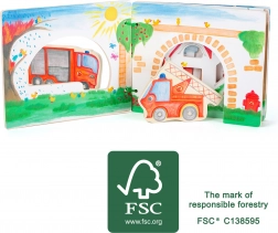 Cu cartea de lemn Pompieri, copiii se cufundă în lumea aventuroasă a pompierilor. Cartea este echipată cu figurine din lemn care inspiră crearea propriilor povești. După stingerea incendiului, copiii pot pune figurinele înapoi în carte, astfel învățând elementele de bază ale ordinii și responsabilității.