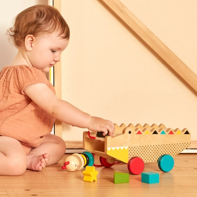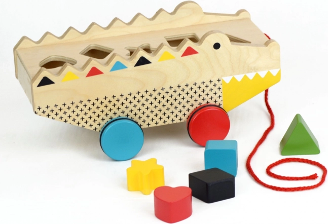 Acest aligator din lemn de tras cu sortator este jucăria ideală pentru micii exploratori de la 18 luni. Cele cinci forme robuste sunt ușor de introdus în deschiderile corespunzătoare, dezvoltând coordonarea mână–ochi și gândirea logică. Datorită șnurului practic pentru tras și roților cauciucate, copiii se bucură de multă distracție activă acasă și în deplasare.