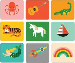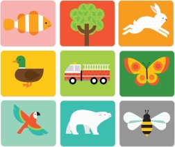 Imagini colorate și clare cu animale, obiecte și mijloace de transport ușurează ghicitul chiar și pentru jucătorii mai mici.