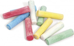 Set de 10 crete colorate mari în ambalaj din carton rezistent, ideal pentru desen pe trotuar, în grădină sau în curtea școlii. Cretele se țin ușor în mână, au culori intense și se șterg simplu cu apă.