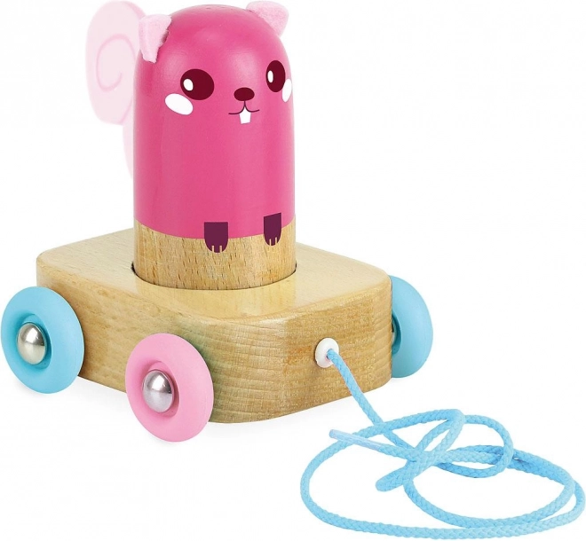 Jucărie drăgălașă de tras în formă de veveriță, care servește totodată ca zornăitoare, îi va încânta pe micii exploratori la primele lor plimbări. Este fabricată din lemn masiv lăcuit și provine 100% din producție în Franța. În timpul mersului, jucăria zornăie plăcut, are urechi și coadă din fetru și roți din plastic rezistent pentru o mișcare lină.
