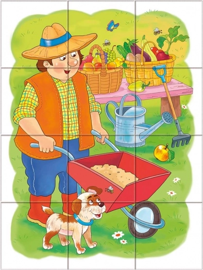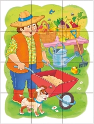Cu ajutorul acestui puzzle, copiii vor cunoaște diferite profesii, cum ar fi polițist, bucătar sau fermier.