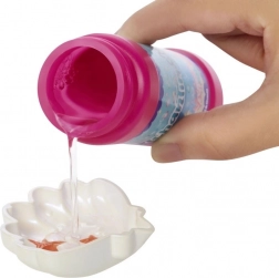 - Set complet: păpușă 17,5 cm, delfinaș, bol-scoică și soluție pentru bule.