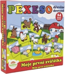 Pexeso din lemn – Primele mele animăluțe TEDDIES este un joc de memorie frumos ilustrat pentru copii. Cartonașele din lemn de calitate sunt plăcute la atingere, rezistente și, datorită culorilor vii și motivelor drăguțe cu animăluțe, îi atrag imediat pe cei mici. Jocul îi învață să recunoască forme și culori, dezvoltă gândirea logică și răbdarea.