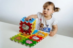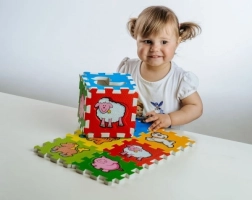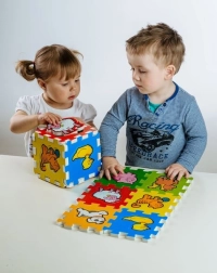 Puzzle-ul nostru din spumă „Animalele mele întâi” este o modalitate excelentă de a-i familiariza pe copii cu diverse animale și, în același timp, de a-i ajuta să-și dezvolte abilitățile motorii. Datorită execuției, este potrivit ca covoraș de joacă moale, ușor de curățat și sigur pentru sănătate.