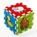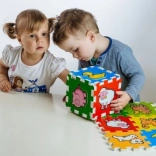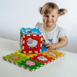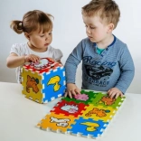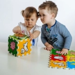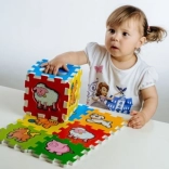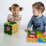 Fiecare piesă de puzzle este decorată cu imagini vesele cu animale, care îi ajută pe copii să recunoască culorile și formele.