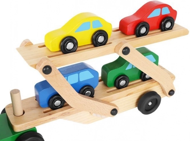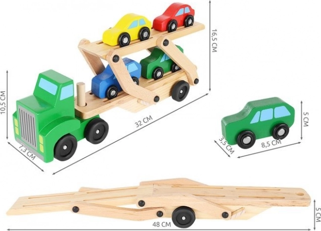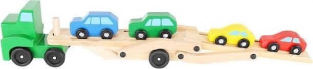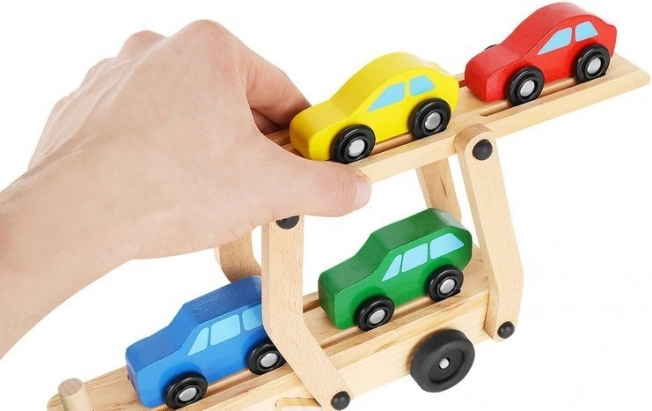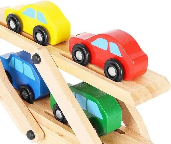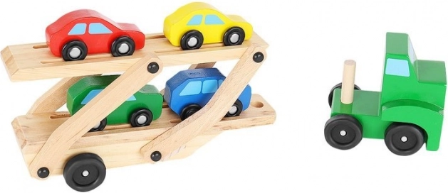 Autotractor interactiv cu platformă și 4 mașinuțe din bioplastic pentru copii de la 18 luni – galbenă