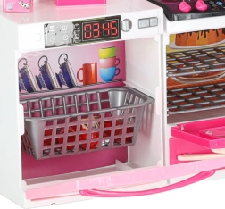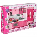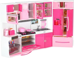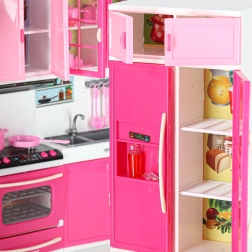 Această bucătărie modernă pentru păpuși aduce copiilor o lume a fanteziei și a imitării activităților zilnice. Cele patru segmente interconectate permit asamblarea unei bucătării complete cu toate elementele importante – de la plită cu cuptor până la frigider și chiuvetă. Arzătoarele cu iluminare LED și sunetele conferă jocului de gătit o notă realistă.