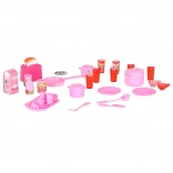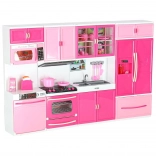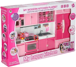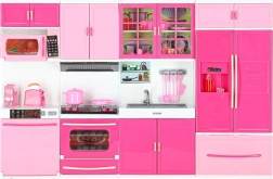 Setul include cuptor cu microunde și mașină de spălat vase, plită cu cuptor, vitrină cu chiuvetă și frigider cu sertar. Copiii se vor bucura de un scenariu complet de gătit, copt și făcut ordine.