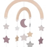 Acest carusel suspendat din lemn pentru camera copiilor, cu steluțe și lună, va oferi spațiului dumneavoastră o atmosferă magică și va veghea visele copiilor.