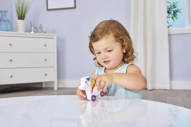 Datorită execuției de calitate din lemn, jucăria este sigură și durabilă, ideală pentru joaca zilnică a copilului.
