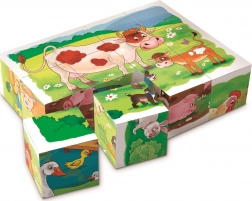 Permiteți copiilor să își creeze propria fermă cu ajutorul cuburilor noastre de lemn de înaltă calitate. Setul conține 12 cuburi, utile nu doar pentru construirea de imagini, ci și ca material pentru construirea unor turnuri sau stive.
