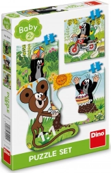 Setul de trei puzzle-uri este conceput pentru a dezvolta creativitatea și abilitățile motorii ale copiilor. Datorită pieselor mari și rezistente, alcătuirea devine o activitate distractivă chiar și pentru cei mai mici. Fiecare imagine este împărțită în 3, 4 și 5 părți, care copiază exact contururile animalelor și altor obiecte.