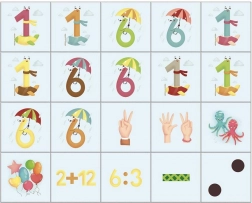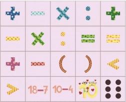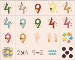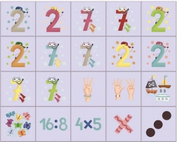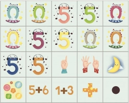 - cifre, semne matematice, simboluri cu puncte, imagini ale degetelor care numără