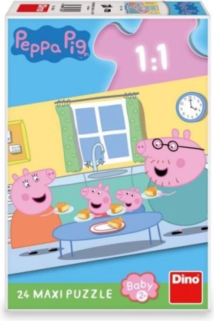 Bucurați-vă de plăcerea asamblării alături de personajul îndrăgit PEPPA PIG. Puzzle-ul maxi cu 24 de piese colorate, cu tema gustării în familie, îi va încânta pe cei mici de la 2 ani. Piesele extra mari se țin ușor în mână și ajută la dezvoltarea motricității fine, atenției și răbdării. Fabricat în Cehia din carton sigur, netoxic și rezistent.