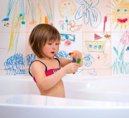Descoperiți posibilitățile nesfârșite de creativitate cu creioanele de baie. Copiii pot desena direct pe cadă sau faianță, creând opere de artă uimitoare în timpul băii. Mamele pot fi liniștite - toate desenele pot fi spălate cu ușurință și creioanele sunt deplin sigure.