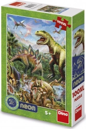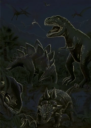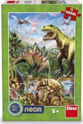 Descoperiți lumea dinozaurilor prin acest puzzle neón uimitor! Copilul dumneavoastră va savura asamblarea distractivă cu elemente neón care se aprind în întuneric și dezvăluie contururile dinozaurilor împreună cu un peisaj montan dramatic pe fundal.