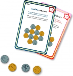 - 50 de cărți de joc cu rebusuri, sarcini și trucuri; 20 de monede