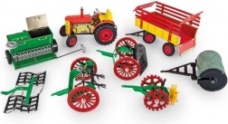 Setul include un tractoraș Zetor cu discuri de plastic la roți și un mecanism cu arc care se întoarce cu o cheie. Oferă trei viteze diferite înainte, o viteză înapoi, poziție neutră și frână manuală. Accesoriile includ: