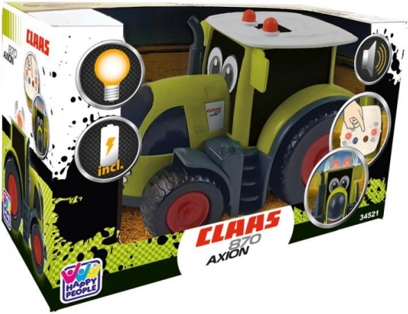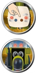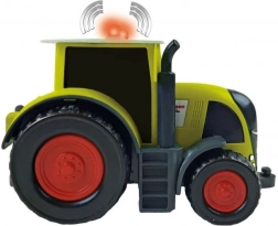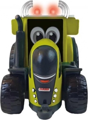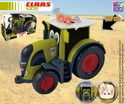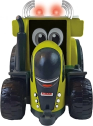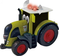 Tractor Claas Mini cu lumină și sunet este o jucărie fantastică pentru cei mici, fiind colorat în verde cu roți negre și accente roșii. Tractorul emite sunete de motor și lumini de avertizare atunci când este apăsat un buton pe cabină.