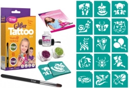 Creează o atmosferă unică la petrecerea de ziua de naștere cu tatuajele sclipitoare TyToo Happy Birthday. Setul conține 15 șabloane cu motive vesele și 2 culori de sclipici, care rezistă pe piele aproximativ 8–18 zile. Tatuajele sunt rezistente la apă, dar se îndepărtează ușor cu alcool sau ulei pentru bebeluși. Modelele finalizate pot fi decorate suplimentar cu pietricele autocolante sau ochi mișcători pentru un efect și mai expresiv.