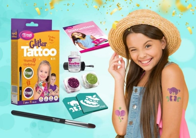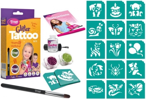 Setul de tatuaje sclipitoare TyToo Happy Birthday este ideal pentru petreceri atât pentru copii, cât și pentru adulți. Datorită aplicării simple și adezivului sigur, vei crea în câteva clipe motive vizibile și de durată, care vor anima orice petrecere de ziua de naștere.