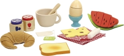 Oferiți-le copiilor un mic dejun jucăuș cu setul VILAC frumos realizat. În pachet găsiți ou feliat, toast, brânză, croissant, 2 gemuri, o ceașcă de ceai cu pliculeț și felii de pepene verde. Totul este realizat din lemn de calitate și fetru pentru durabilitate și autenticitate.