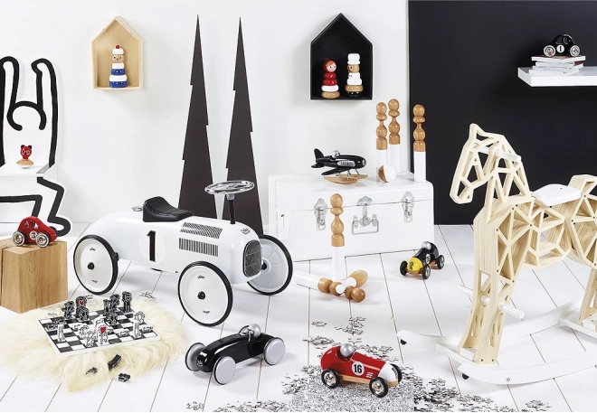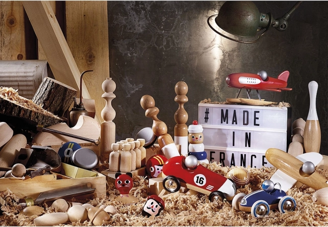 Jucăria este realizată din lemn lăcuit, oferind nu doar durabilitate, ci și un aspect plăcut. Execuția din Franța aduce produse de calitate și sigure.