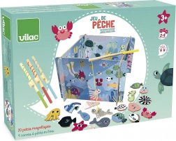 Descoperă farmecul lumii marine cu jocul Vilac Prinde animăluțe marine. Copiii se vor bucura de momente competitive și cooperative în timp ce prind peștișori și creaturi drăgălașe cu undițe magnetice. Ilustrațiile superbe realizate de Michelle Carlslund și piesele de calitate din lemn asigură durabilitate și plăcere vizuală.