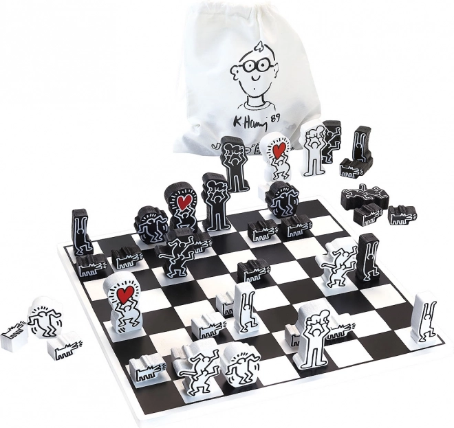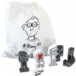 Include un săculeț textil cu motiv KEITH HARING pentru transportul și depozitarea în siguranță a pieselor.