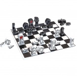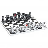 Piesele cu personaje stilizate și inimi conferă partidei de șah un caracter aparte și transformă setul într-un obiect artistic.