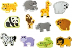 - 12 figurine din lemn cu animale exotice + geantă (în total 13 piese)