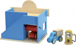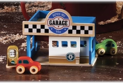 Garajul este realizat din lemn masiv durabil și placaj gros, rezistând utilizării zilnice intense. Pachetul include două mașinuțe diferite și pistolul detașabil al pompei – trebuie doar să despachetați și să vă jucați.