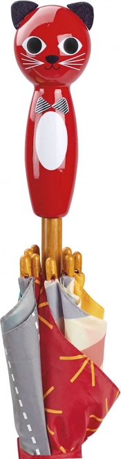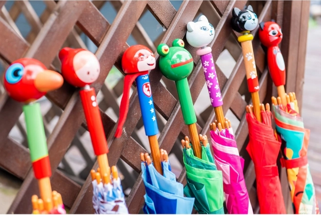 Umbrela noastră pentru copii are modele jucăușe care fac plimbările zilnice mai plăcute chiar și pe timp de ploaie. Mânerul ergonomic în formă de pisică este proiectat pentru o prindere confortabilă și realizat din lemn de calitate. Construcția metalică asigură durabilitate și stabilitate.