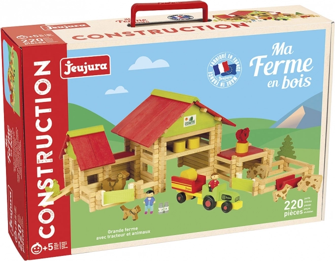 Descoperă farmecul vieții la țară cu construcția din lemn JEUJURA, care le arată copiilor viața la fermă și le dezvoltă creativitatea și motricitatea fină. Setul conține 220 de piese din lemn masiv, tractor și animăluțe și este livrat într-un cascăet practic cu instrucțiuni simple. Fabricat în Franța din lemn de fag și pin de calitate, cu vopsele pe bază de apă.