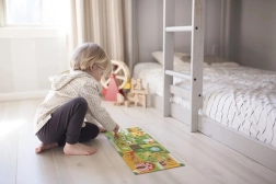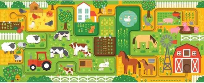 Descoperiți lumea fermei cu un set creativ care îmbină asamblarea și un joc de căutare distractiv. După asamblarea puzzle-ului lung, copiii urmează traseele cu degetul, exersând coordonarea mână–ochi și, în același timp, caută în imagine 20 de obiecte. Activitate ideală pentru momente petrecute împreună cu copiii sau pentru joc individual.