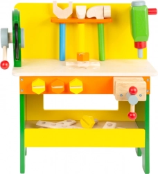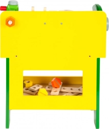 Construcția solidă din lemn de calitate, cu lac colorat, garantează stabilitate și o durată lungă de utilizare. Bancul este proiectat cu accent pe siguranță și învățare prin joacă – o jucărie ideală pentru jocuri de rol, dezvoltarea gândirii tehnice și a imaginației.