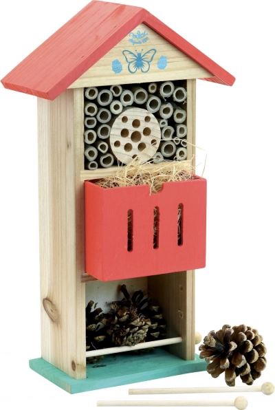 Datorită acoperișurilor sale roșii decorative și aspectului natural, acest hotel pentru insecte este un element estetic pentru orice grădină.