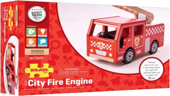 Construcția din lemn, realizată din materiale de înaltă calitate și obținute responsabil, asigură durabilitate și siguranță, respectând standardele europene actuale de siguranță. Atenția la detalii și calitatea fac din această jucărie un cadou perfect pentru orice mic pompier.