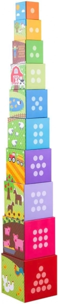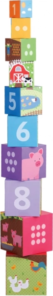 Cuburile didactice cu motive de fermă ajută copiii să-și dezvolte motricitatea fină și coordonarea mână-ochi în timp ce învață să numere.