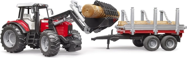 Setul BRUDER aduce tractorul iconic MASSEY FERGUSON 7480 cu încărcător frontal și remorcă pentru lemn pentru un joc cât mai realist. Datorită detaliilor funcționale, precum capota motorului care se deschide, axa față direcționabilă și anvelopele moi, copiii se descurcă ușor cu încărcarea și transportul buștenilor.