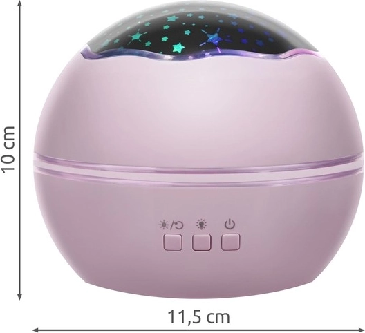 Această veioză de noapte compactă transformă camera copilului într-un tărâm magic. În funcție de dispoziție, alegeți proiecția cerului înstelat sau motive subacvatice relaxante. Datorită cupolei rotative și celor patru moduri de culoare (verde, albastru, alb, roșu) veți crea o iluminare ambientală delicată pentru un somn liniștit.